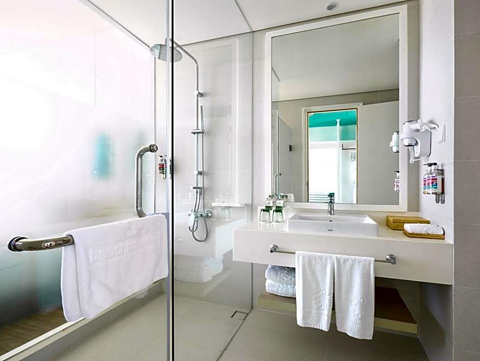 This bright room is furnished with modern decor inspired by the sea and has air conditioning, flat-screen TV with satellite/cable channels and mini-bar. Attached bathroom comes equipped with a walk-in shower, hairdryer and free toiletries.