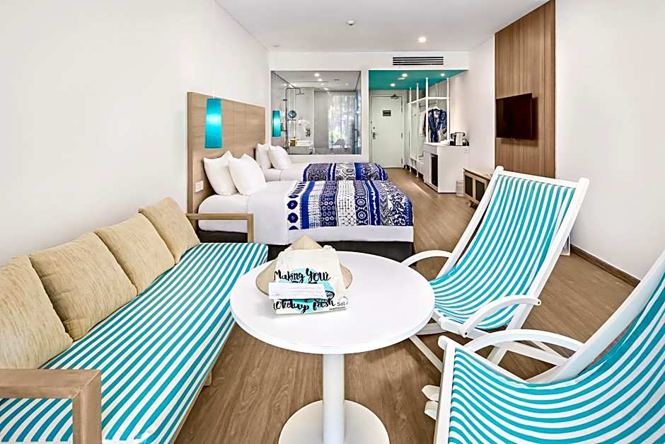 Featuring sea-inspired interior design, this room features air conditioning, a wardrobe and personal safe. Swimming pool or gardens can be seen from the attached balcony. Private bathroom has a bath, free toiletries and bathrobes.